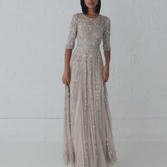 Luxurious 3/4 Sleeve Embellished A-line Gown